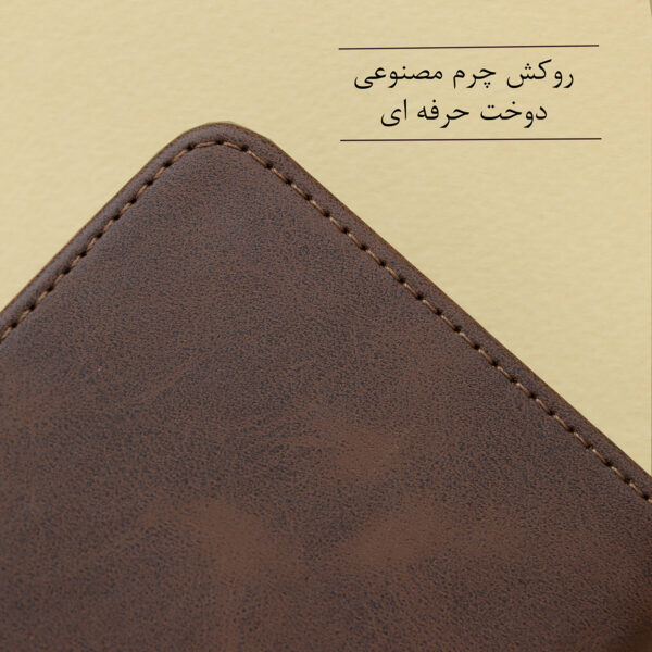 • قفل مغناطیسی: مجهز به قفل آهنربایی قوی که درب کیف را محکم بسته نگه می‌دارد و از باز شدن ناگهانی جلوگیری می‌کند. این ویژگی، امنیت کارت‌ها و اسناد را تضمین می‌کند.